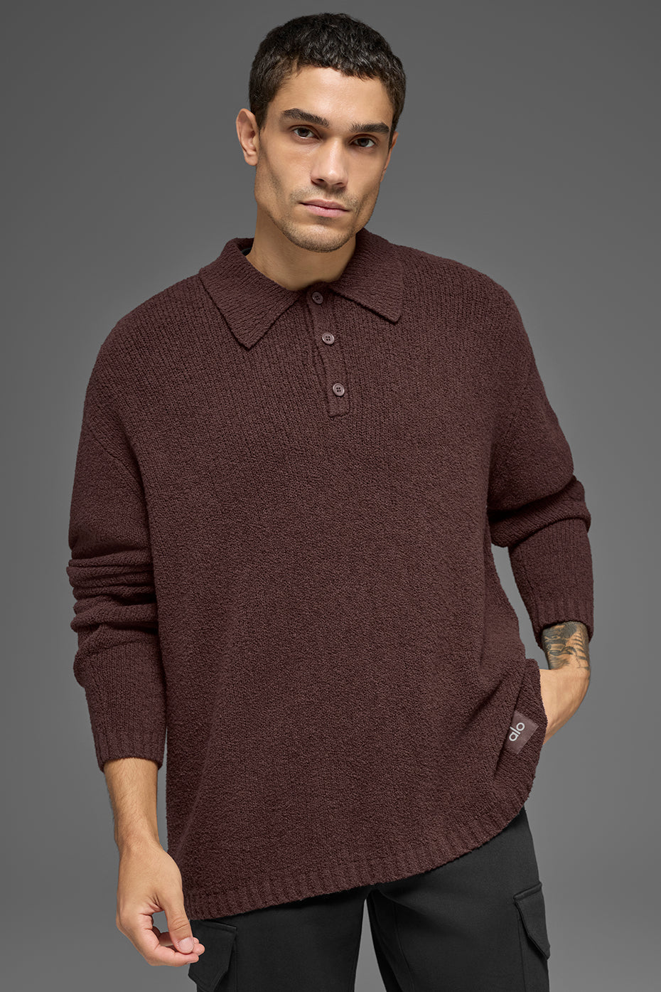 The Textured Knit Long Sleeve Polo is built from a midweight knit with a soft texture and a structured collar for a look that’s clean, confident, and quietly sharp. Wear it on its own or under a coat or jacket for a layered look with subtle style.