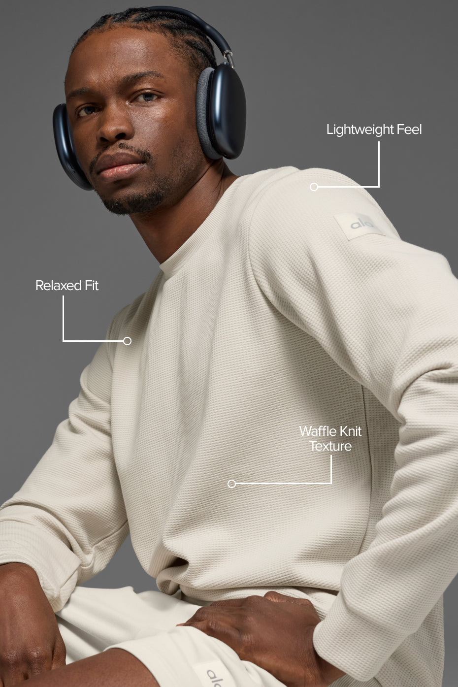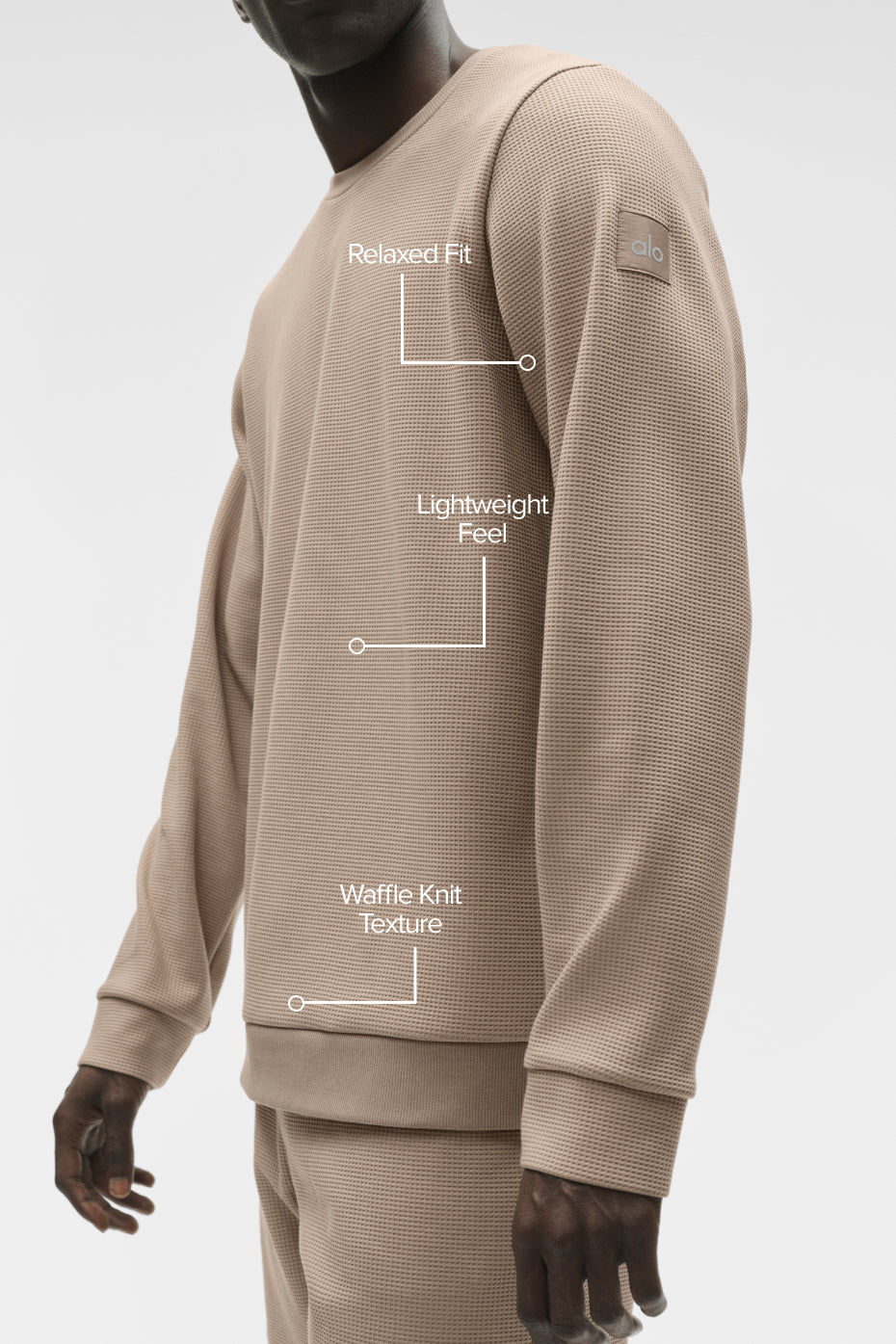 Your go-to for colder mornings, long flights, and recovery days. The Waffle Lounge Long Sleeve Crew is breathable, easy to layer, and provides all-day ease with a masculine edge. Pair it with the matching jogger or your favorite pair of shorts for a clean, comfortable look.