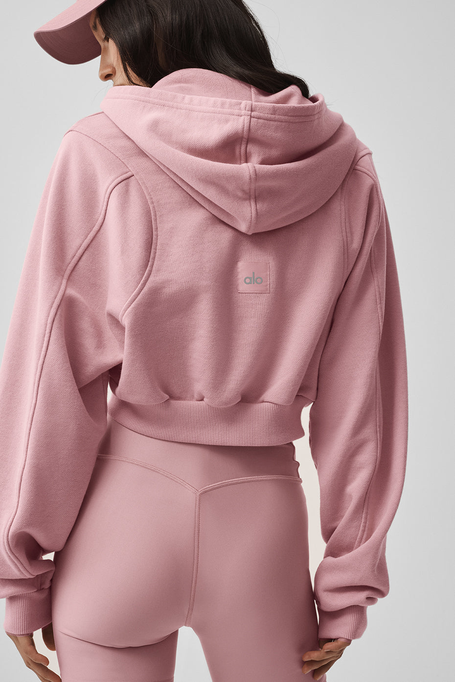 A cozy classic with a shrunken silhouette, the Sweet Escape has a hood, a front zipper, ribbing at the cuffs and a waist-grazing hem. The pocketless design creates a streamlined fit, and the seamed details along the back and arms elevate the look for outside-the-house adventures. Plus, it’s all made from our soft, smooth, incredibly comfy Accolade fabric.
