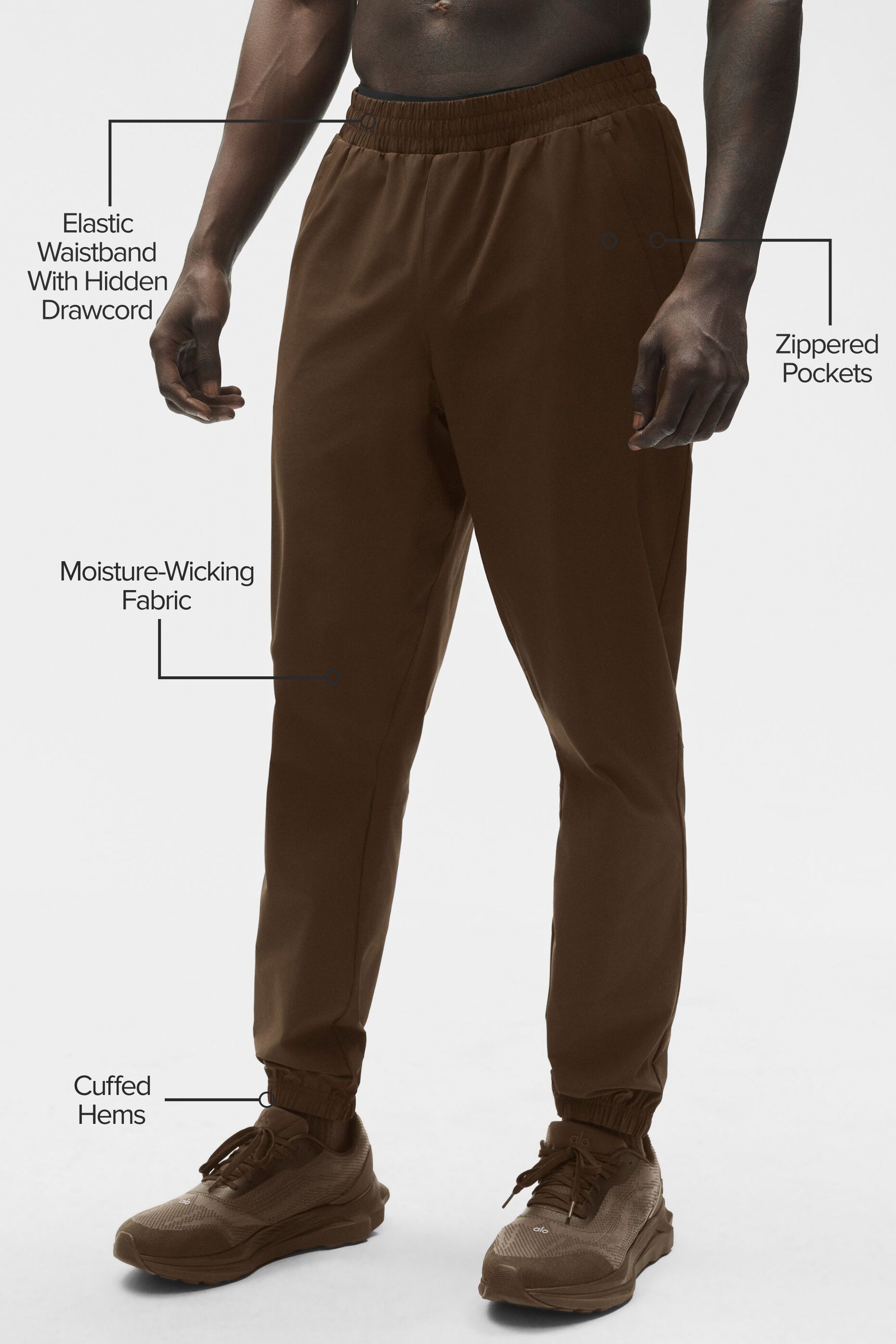 The Repetition Jogger features a drawstring waistband and a slim, relaxed cut that was made for an easy-to-wear fit. The cuffed hems, zippered pockets, and moisture-wicking fabric complete the look for all-day performance and recovery days alike.
