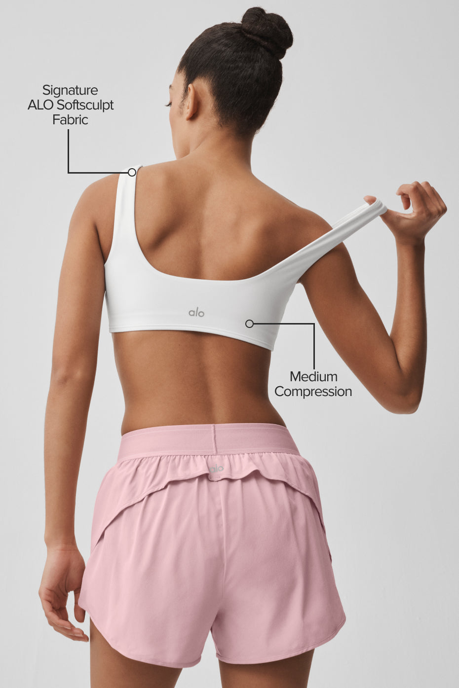 A modern take on performance elegance. The ALO Softsculpt Precision Bra is crafted from our signature naturally-breathable, medium-compression fabric with a subtle sheen to catch the light just right. The fabric has an ultra-soft feel that’s comfortable enough for studio sessions and recovery moments. Designed for a smooth, barely-there feel, it features clean lines, a sculpted silhouette, and just the right amount of hold for low-to-medium impact movement. Pair it with the ALO Softsculpt leggings for a chic look at your next barre class.