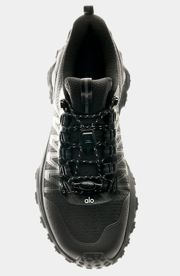 The ALO Trail was built for connection, ease, and moving meditation. From trail to street and everywhere in between, this performance shoe was designed with off-the-grid movement in mind. It has a lightweight nylon upper constructed with water-resistant materials and features like a stabilizing heel clip, molded TPU toe cap, and high-rebound midsole compound for stability, support, and protection. You’ll have grip on variable terrain with the oversized traction pattern with sidewall lugs and easy wear and rapid tightening with the speed lacing system, with a cord lock and puller. Get ready to build momentum and forge a new path in the ALO Trail.